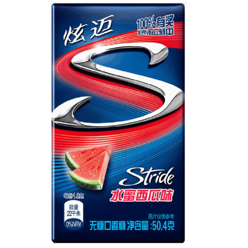 Stride Watermelon flavored Sugar free Chewing Gum, 28 pieces 炫迈水蜜西瓜味无糖口香糖28片 6954432710256
